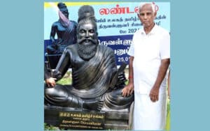 Photo: Dr. Pillai with statue of the Tamil poet sage Thiruvalluvar, India, 2023.
