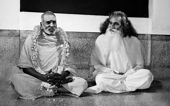 Photo: Sri Swami Satchidananda with Sri Swami Chidbhavananda, Ramakrishna Thapovanam, Thirupparaithurai, Tamil Nadu, South India, mid-1970s.