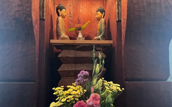 “Two Buddhas,” photo by Eve Marko at Bread Loaf Mountain Zen Center in Vermont.